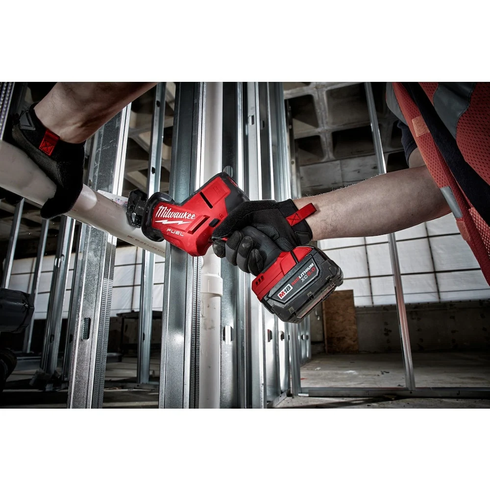 The Milwaukee 2719-20 M18 FUEL HACKZALL is the fastest cutting and most powerful one-handed design reciprocating saw. Utilizing a POWERSTATE Brushless Motor and a best in class 7/8 inch stroke length, the M18 FUEL HACKZALL cuts up to 50% faster than competitors. The compact, 1-handed design provides superior control and the ability to make cuts in tight spaces. The dual gear counter balance mechanism provides the lowest in-cut vibration of any reciprocating saw, resulting in faster cut-starts in metal and reduced user fatigue. REDLINK PLUS Intelligence ensures optimized performance and protects your investment from overload, overheating and over-discharge. A rubber seal and weep holes provide superior protection against water and debris.